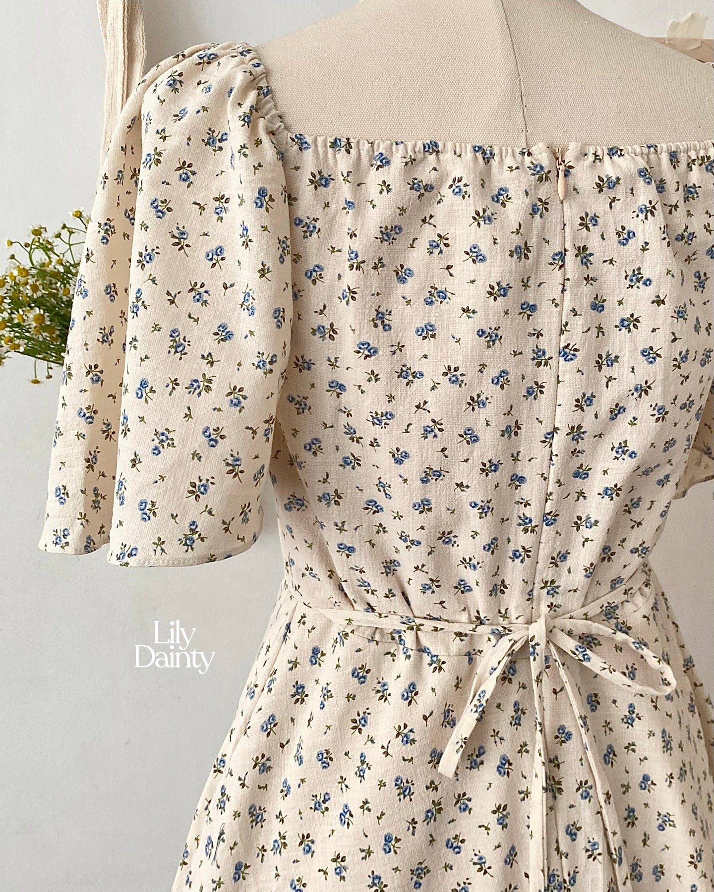 Florie (Fluttered Sleeves version) Linen-Cotton Midi Dress