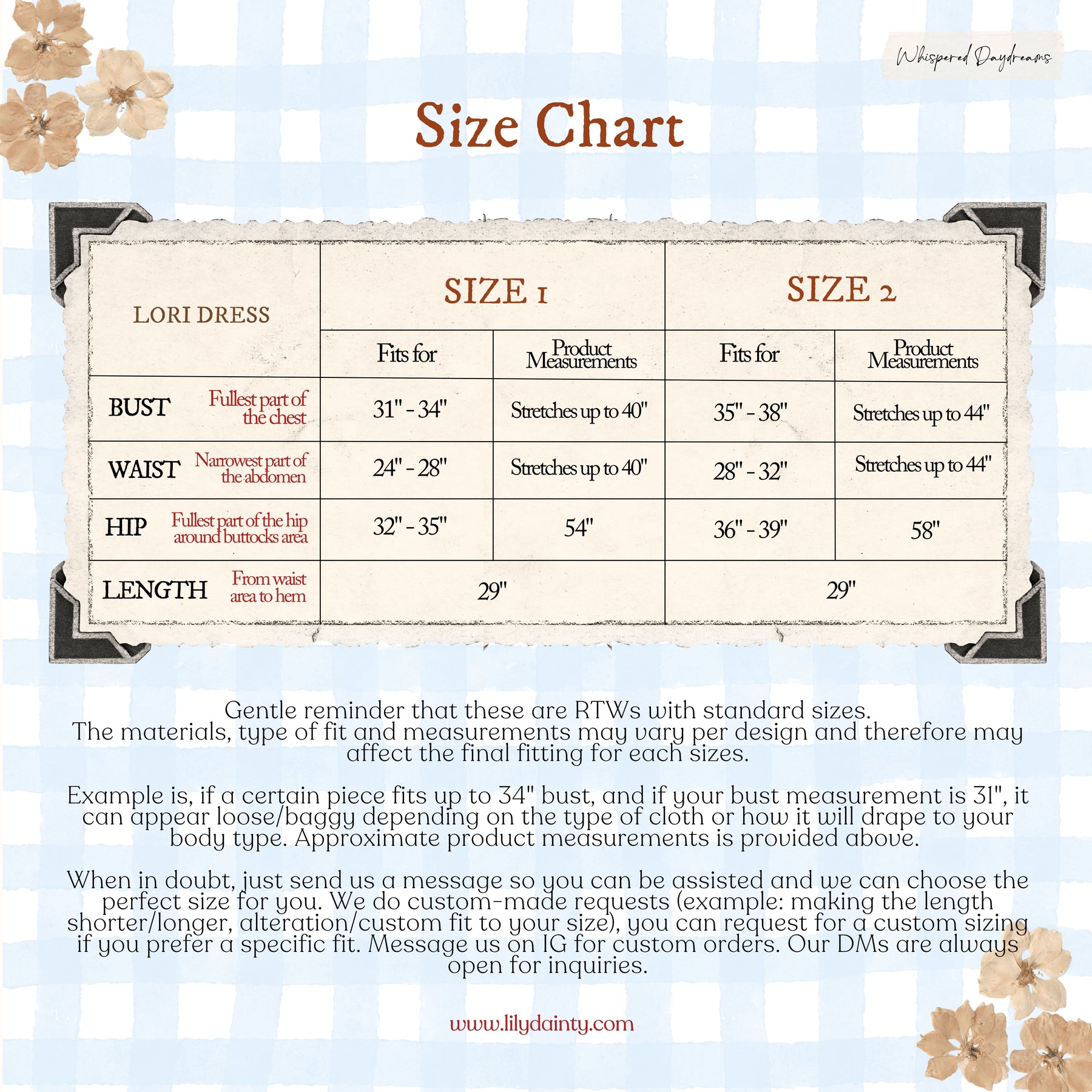 Also, gentle reminder that these are RTWs with standard sizes. The materials, type of fit and measurements may vary per design and therefore may affect the final fitting for each sizes.
