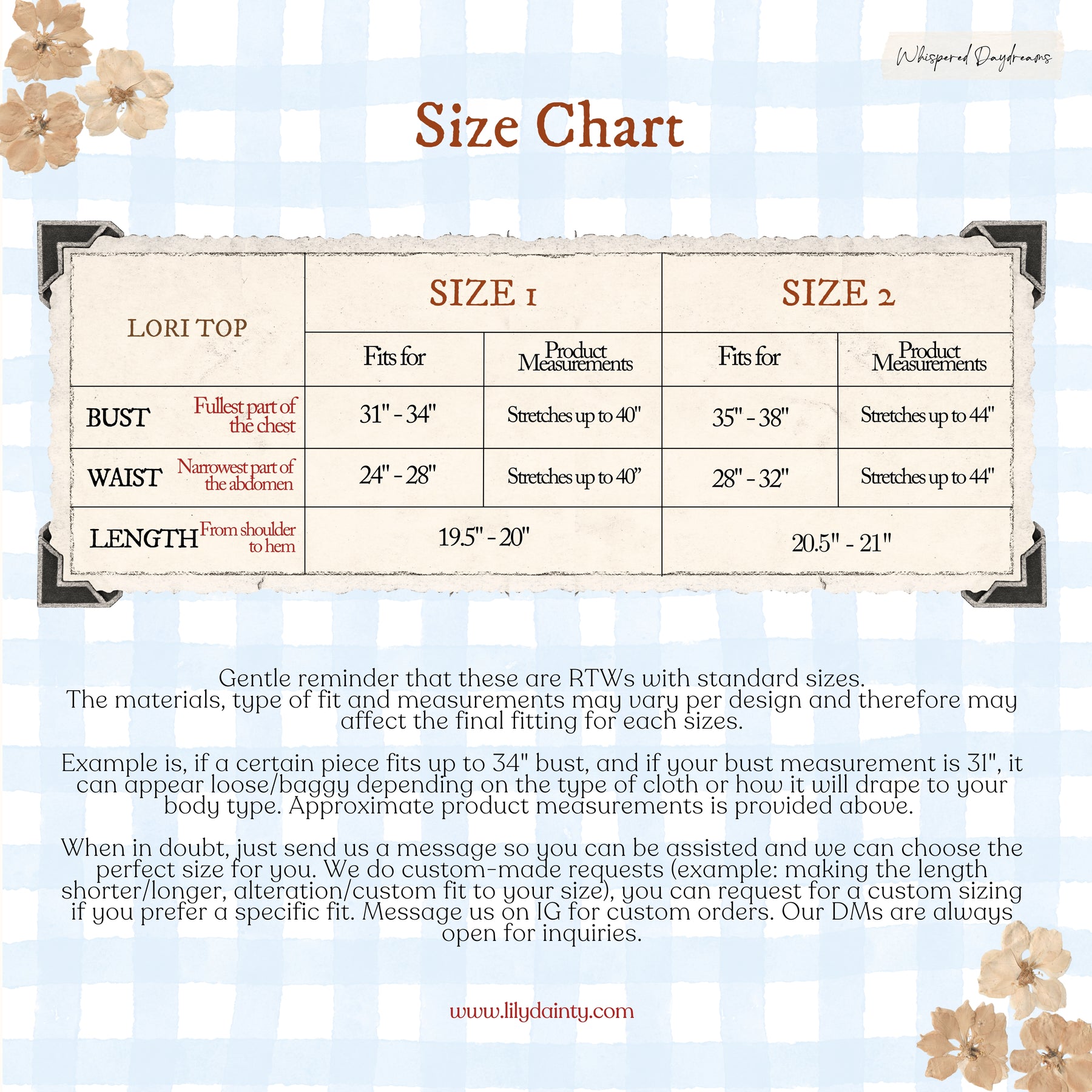 Also, gentle reminder that these are RTWs with standard sizes. The materials, type of fit and measurements may vary per design and therefore may affect the final fitting for each sizes.